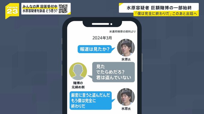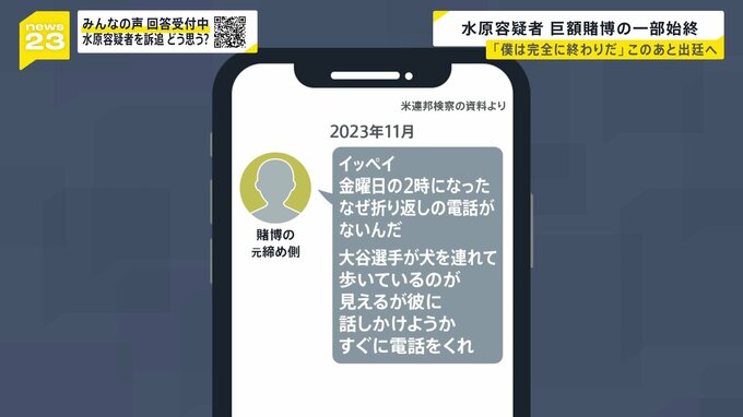 水原容疑者からの連絡が途絶えると、元締めからこんなメッセージが送られてきました。