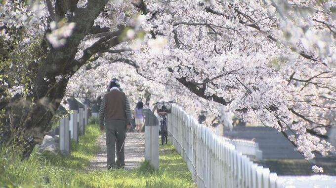 全国各地では桜の見頃をすぎたところもありますが、富山県では今満開を迎え、大勢の人たちが桜と青空といった春だけの鮮やかなコントラストを楽しんでいます。14日の富山県内はこのあとも、晴れの天気が続き、最高気温は富山で22℃など“5月の陽気”となりそうです。