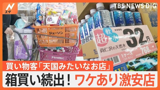 値上げが続く中で人気なのが「ワケあり激安店」。1年中すべての商品が半額!お得すぎて箱買い続出!お客さんが購入したお得な商品を見せてもらいました。