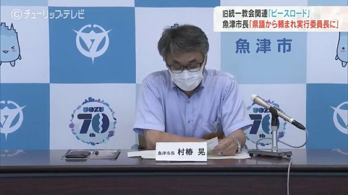 魚津市の村椿 晃市長は1日の会見で旧統一教会との関係について関連団体のイベント「ピースロード」のことしの実行委員長を引き受けていたことを明らかにしました。魚津市 村椿 晃市長:「統一教会そのものと関係が…