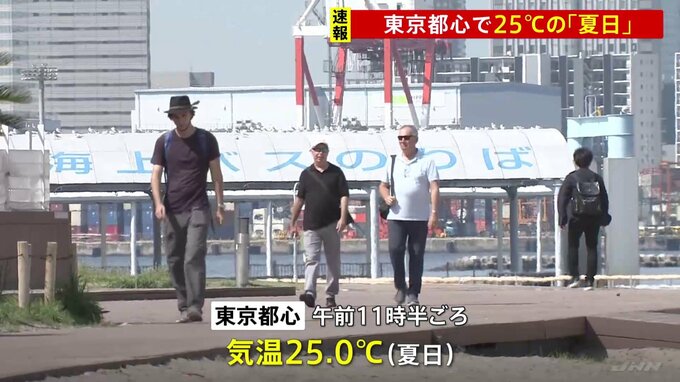 きょうは東日本などで気温が上がっていて、東京都心では25℃の「夏日」となりました。関東各地ではこの後も季節外れの暑さとなりそうです。都内では朝から日差しが降り注ぎ、気温がぐんぐん上昇。東京都心では午前1…