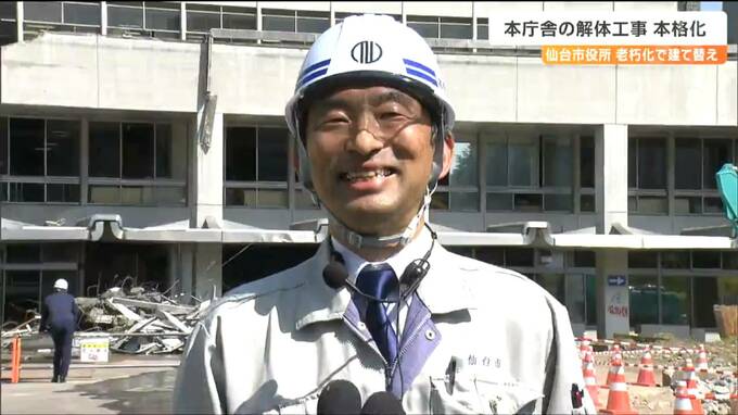 「午前9時前です。仙台市役所本庁舎の本格的な解体工事がいよいよ始まりました」