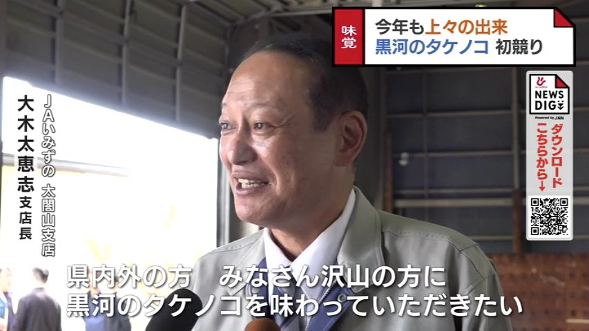 JAいみずの太閤山支店 大木太恵志 支店長:「これから旬を迎えますので、県内外の方、みなさん沢山のの方に黒河のタケノコを味わっていただけたらなと」