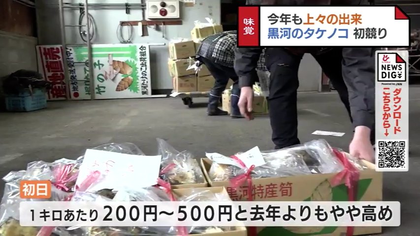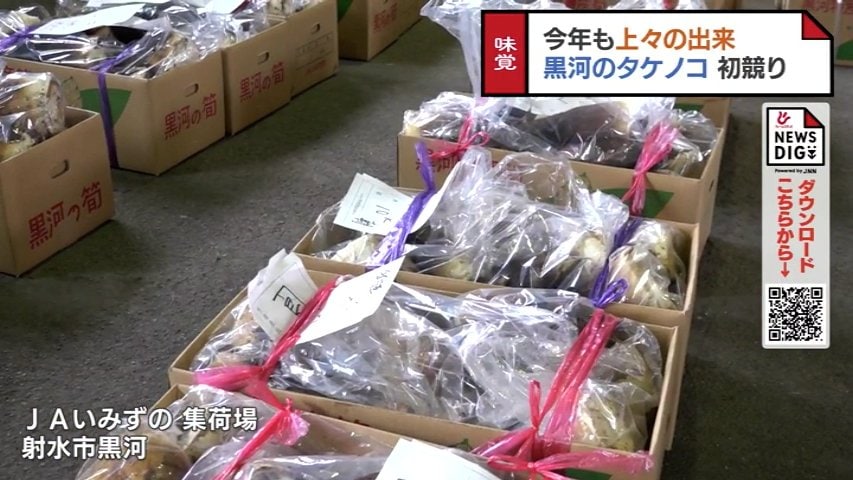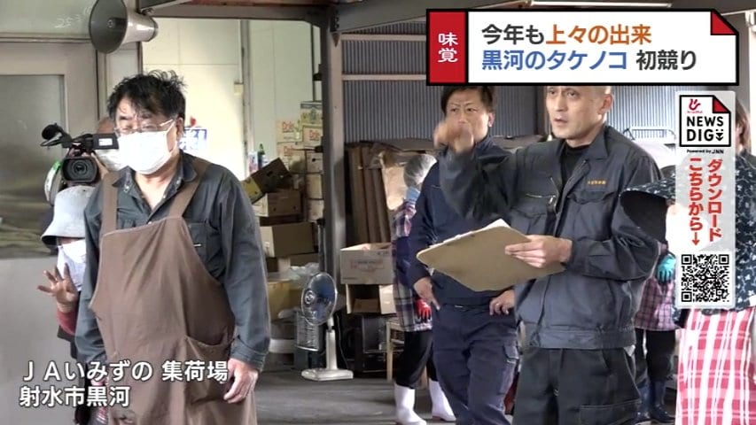 富山県内有数のタケノコの産地、射水市黒河地区でタケノコの初競りが行われました。