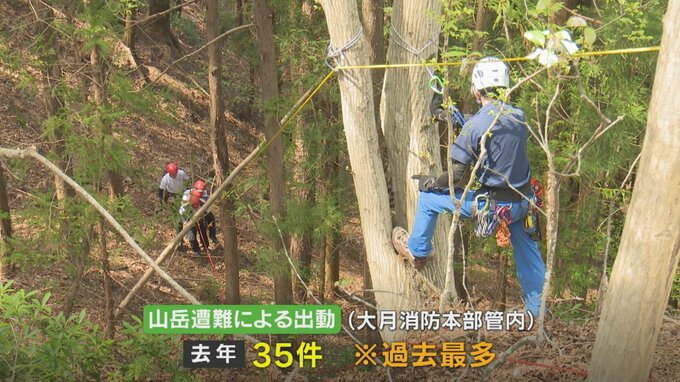 大月市消防本部によりますと、去年管内の山岳遭難による出動は35件で過去最多だったということです。