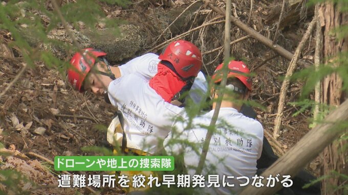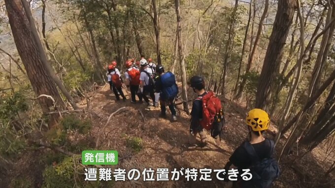 訓練には福岡の企業が開発した遭難者の捜索を助ける位置特定サービス「ココヘリ」が活用され、遭難者役の隊員がココヘリの会員に送られる発信機を持って山に入りました。