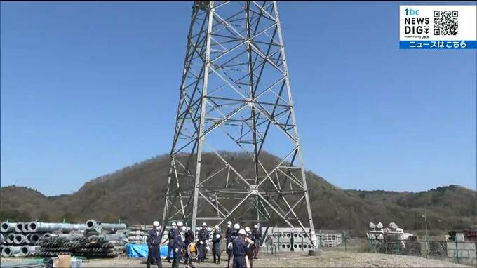 宮城県蔵王町にある高さ30メートルの鉄塔で先輩の指導を受けた後、命綱のフックをかけながら慎重に鉄塔を登っていきました。この企業では毎年新人研修で初登りを行っていて新入社員たちは、自分のペースで10メートルから20メートルほどを登りました。