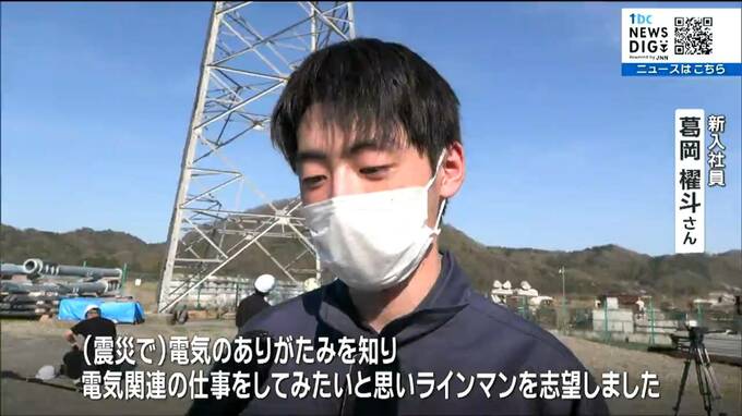 「(震災で)電気のありがたみを知り、電気関連の仕事をしてみたいと思い、ラインマンを志望しました。かっこいいラインマンになりたいと思います」