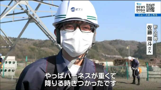 鉄塔の点検を行う「ラインマン」は、電力の安定供給に欠かせない職種ですが、高齢化や人材不足が課題となっています。新入社員9人のうち2人がラインマンの道に進むということです。
