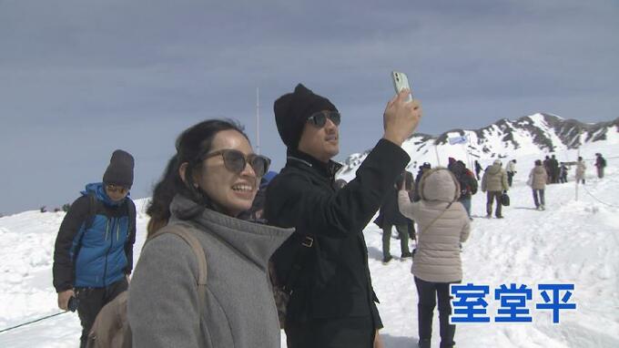 満たす限りの一面の銀世界を前に、観光客らは雄大な景色を眺めたり雪に触ったりして思い思いに楽しんでいました。