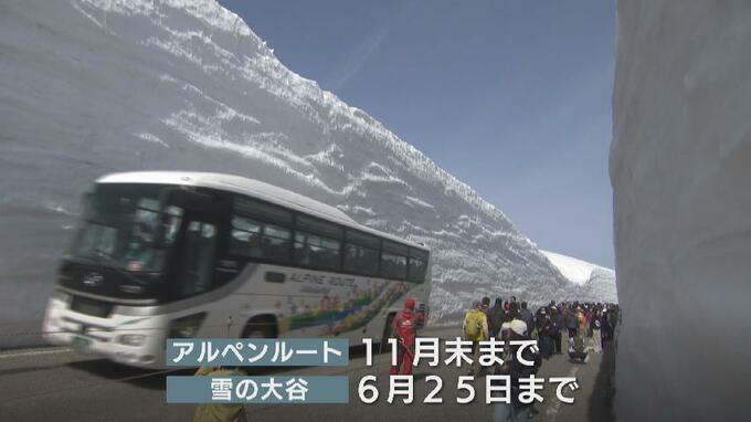 アルペンルートは11月末まで雪の大谷は6月25日まで楽しむことができます。