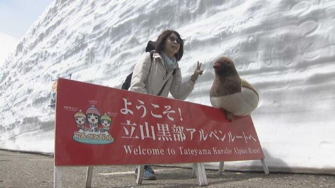 今年は北陸新幹線の敦賀延伸にかけ例年よりおよそ150メートルほど長くなっていて、雪の大谷の入り口付近まで繋がりました。パノラマロードは雪解けが進むまで5月6日まで期間限定で楽しめます。