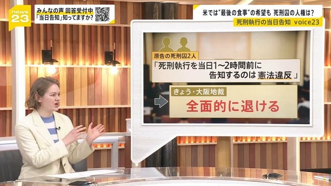 一方、日本はお伝えしているように当日告知です。この理由について、これまでの国会答弁や法務大臣は会見でこのように話しています。