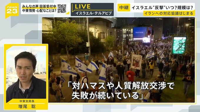 ここでイスラエルから中継です。増尾さんお願いします。