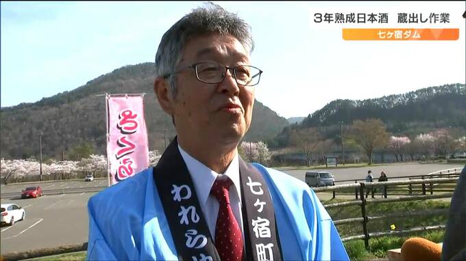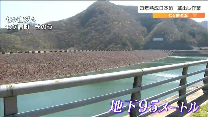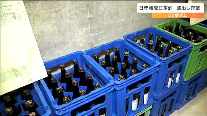 七ヶ宿ダムの建設30周年を記念したこの取り組みは2021年に始まり、地下に貯蔵した四合瓶550本を1年に77本ずつ、7年かけて蔵出しするというものです。