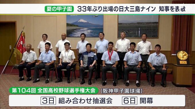 夏の高校野球静岡大会で優勝した日大三島高校の選手らが8月1日、静岡県の川勝平太知事に春夏連続の甲子園出場を報告しました。川勝知事のもとを訪れたのは、33年ぶりの夏の甲子園出場を決めた日大三島高校野球部の…