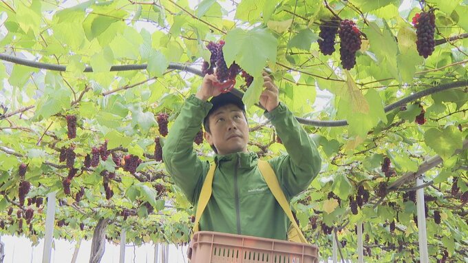 ハウス栽培のブドウ、デラウェアの収穫が山梨市で始まりました。