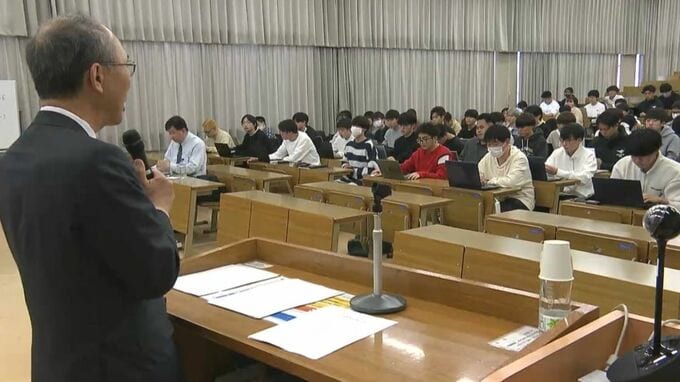 岡山商科大学で岡山県内の経営者を迎え、経営のノウハウなどについて学ぶ「岡山経営者論」の開講式がきのう(15日)開かれました。開講式には、経済学部の学生をはじめとした約100人の受講者が出席しました。この…