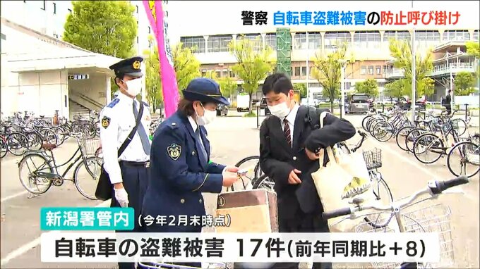 新潟署管内では2月末までに、すでに17件の盗難被害が発生していて、警察は鍵かけの徹底を呼び掛けています。