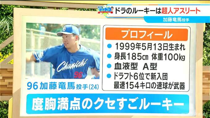 “度胸満点のクセすごルーキー”ということで、東邦ガス時代に、飛び込み営業をしていた営業マンだったんですよ。そして、彼のまっすぐというのは、ちょっとカット気味に曲がるというクセ玉を操るということなんです。