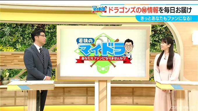 「若狭のマイドラ あなたもファンになりませんか?」。毎日ドラゴンズをお伝えするので「マイドラ」です。あまり野球には詳しくない方でも、このコーナーで、やがては「マイドラゴンズ」と言ってもらえるくらい、ドラゴンズを好きになってもらおうというものです。