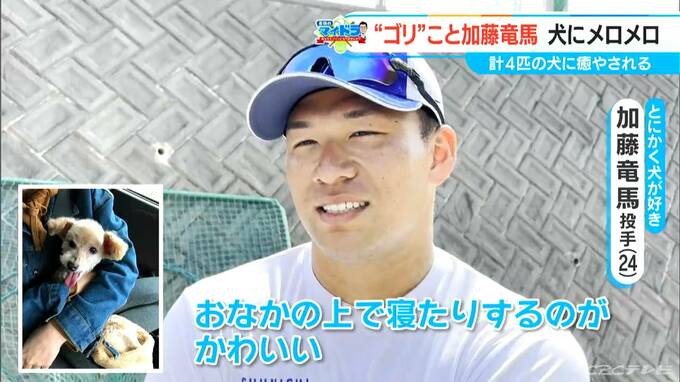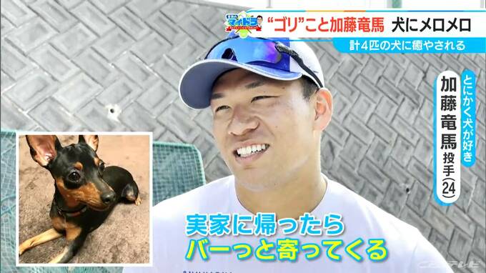身長185センチ 体重100キロの加藤投手は…実家の犬にメロメロ