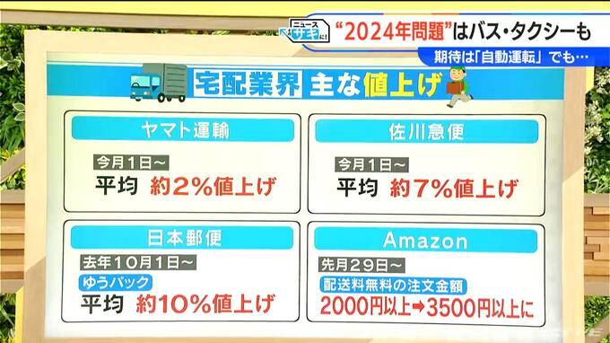 ヤマト運輸は4月から平均で約2%値上げ、佐川急便も4月から平均で約7%の値上げ、郵便局の「ゆうパック」は去年10月から平均約10%の値上げとなっています。