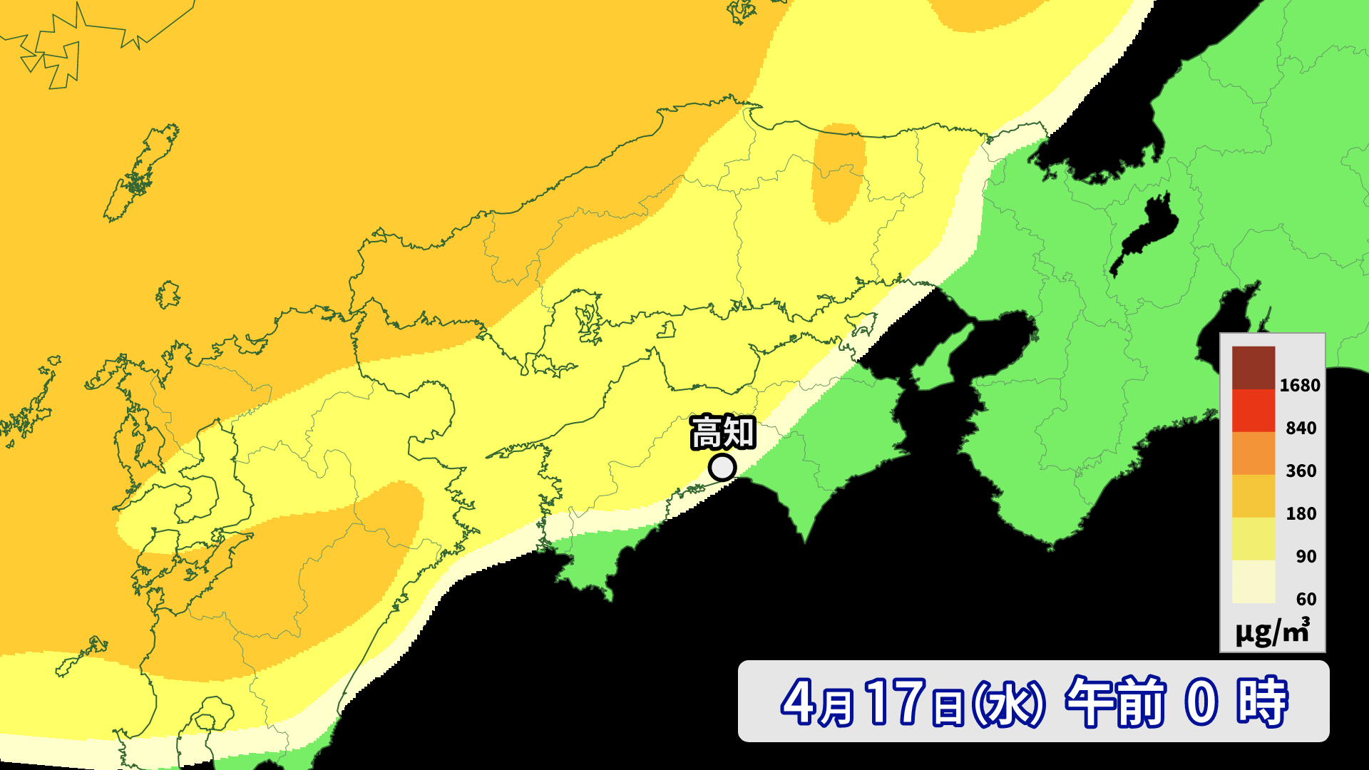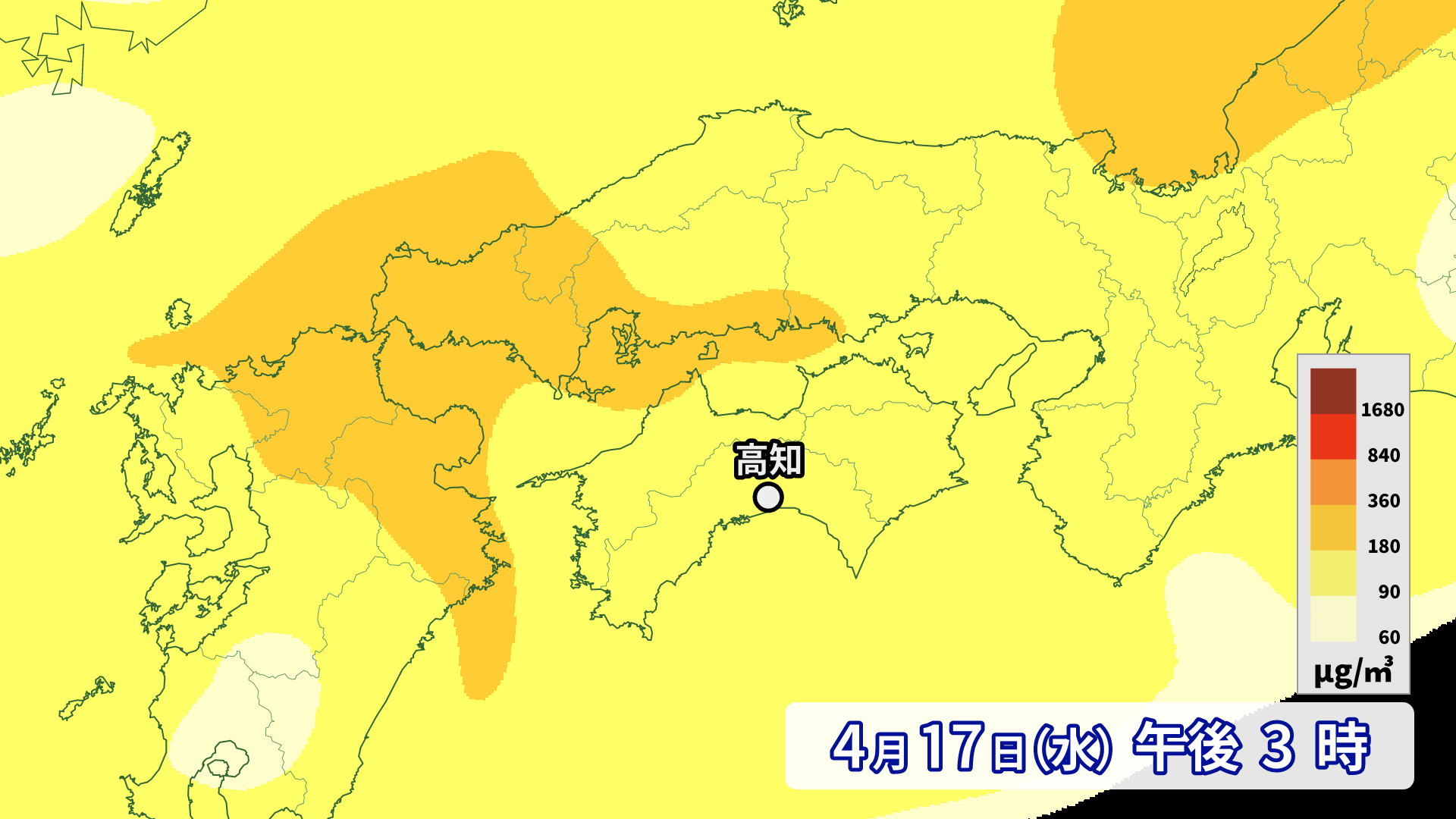 17日は県内に黄砂が飛来し、水平方向の見通しが10キロメートル以下になる予想となっています。場所によっては5キロメートル以下となり交通機関に影響が出るおそれがあります。また、呼吸器や循環器に疾患のある方や花粉症の方は症状が悪化するおそれがあるので、外出時は黄砂への対策をしっかりとしましょう。