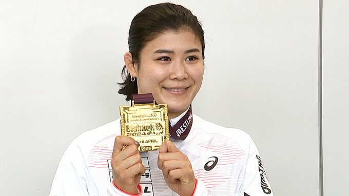 レスリングのアジア選手権が行われたキルギスからパリ五輪女子日本代表が帰国した。50キロ級で金メダルを獲得した須崎優衣(24)は「自分としては悔しい内容の金メダルだった。たくさんの課題が見つかって、まだまだ成長しなければいけない点が見つかった」と大会を振り返った。