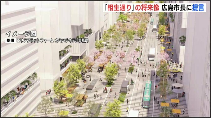 広島市中心部の街づくりに取り組む団体が、紙屋町などの繁華街を通る「相生通り」の将来像を広島市長に提案しました。提言したのは、官民連携の街づくり団体「カミハチキテル」です。広島市中心部で人の流れの滞在…