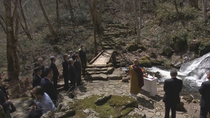 17日は、公園を管理する関係者ら30人が出席して滝開きが行われ、「平滝(ひらたき)」の前で焼香をして、今シーズンの安全を祈願しました。