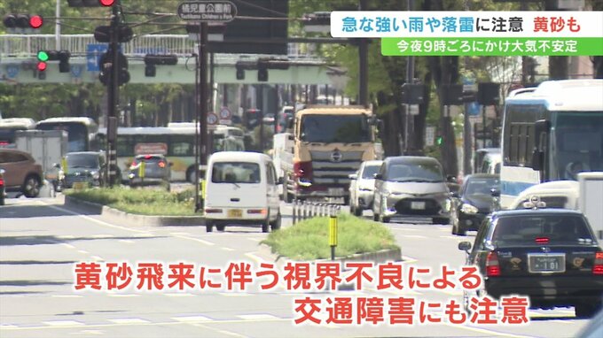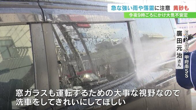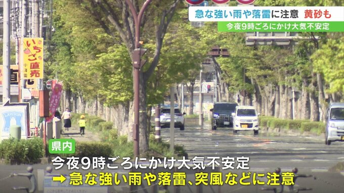 山梨県内は大気の状態が不安定となり、17日夜9時ごろまで落雷や急な強い雨などに注意が必要で、18日にかけて黄砂の飛来も予想されています。