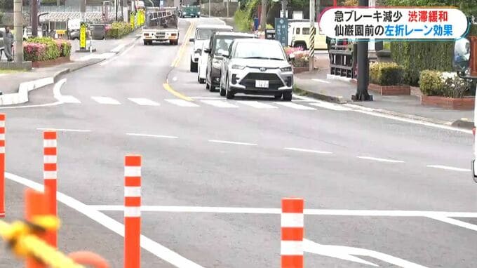 鹿児島市の仙巌園前交差点の国道10号で左折レーンの供用が始まって1か月あまりが経ちました。鹿児島国道事務所は、これにより急ブレーキが減り、渋滞が緩和したと発表しました。(50代)「姶良市から鹿児島市内に…