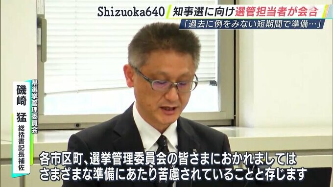 静岡県の川勝平太知事の辞職に伴う知事選に向けて、選挙管理委員会の担当者が集まる会議が4月17日開かれました。担当者からは「通常の選挙とは異なる」と戸惑いの声が聞かれました。