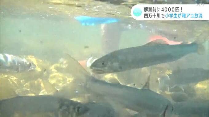 アユ漁の解禁を前に四万十川で小学生がアユの稚魚を放流しました。バケツの中で元気よく跳ねているのは高知県四万十市内の施設で養殖した10センチほどのアユの稚魚です。(男子児童)「すごくピクピクしてます。…