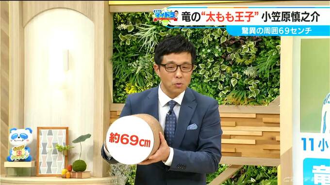 「竜の太もも王子、慎ちゃん」とありますが、彼の太もも69センチということで、グルっと太ももの円周が69センチで、入団した頃は、このサイズの抱き枕のようなものが販売されたんですよ。ウエストサイズぐらいなんですけれど、すごいですよね。