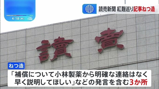 読売新聞社は、小林製薬の「紅麹」成分を含むサプリメントを摂取した人に健康被害が出ている問題に関連する記事について、取引先企業の談話にねつ造があったと明らかにし、謝罪しました。読売新聞社によりますと、…