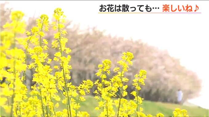 およそ120本のソメイヨシノの前では菜の花も咲き始めていて、春はまだまだ続きそうです。