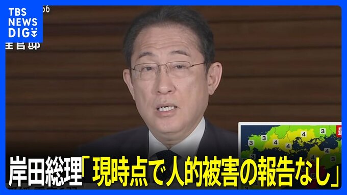 先程、関係省庁から報告を受けました。そして、現地の警察・消防、さらに宿毛市役所、愛南町役場等とは連絡が取れておりますので、情報共有をしておりますが、現在のところ人的被害は報告されておりません。また、…