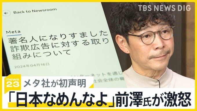 番組で継続して取材している「有名人をかたるニセ広告」。前澤友作氏が「日本なめんなよ」、池上彰氏が「まるで他人事のようだ」と、Facebookなどを運営するメタ社の声明に怒りの声が上がっています。こうした中、…