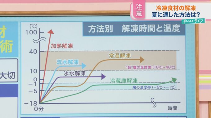 ▼流水解凍・常温解凍→“超・魔の温度帯”が長い