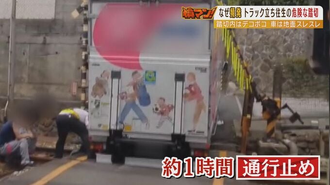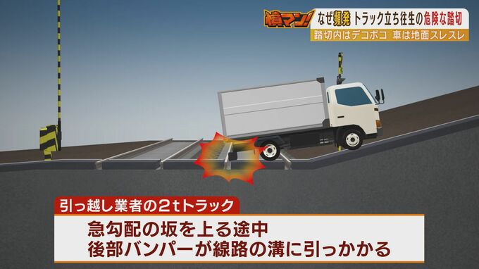 実はこの踏切では去年4月と10月にもトラックの立ち往生が起きています。付近の住民によると過去にも頻発しているといいます。