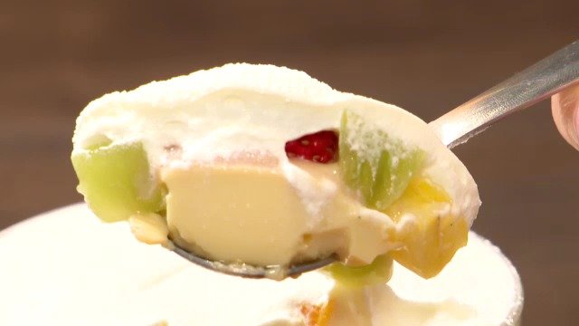 「お待たせしました。名古屋栄カフェ限定のプリンアラモードでございます」