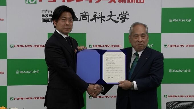 岡山県内でレンタカー事業を展開するトヨタレンタリース新岡山と、岡山商科大学が、地域社会への貢献を目指して包括連携協定を結びました。トヨタレンタリース新岡山の末長一範社長と岡山商科大学の井尻昭夫学長が…