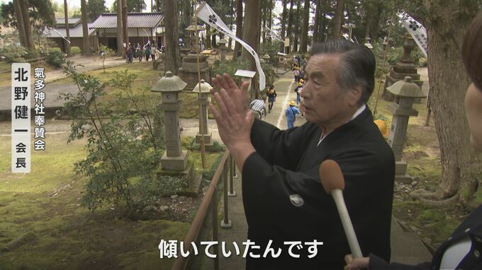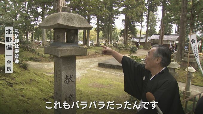 氣多神社奉賛会・北野健一会長:「傾いていたんです。ずれとったというか。これもばらばらだったんです。これを全部引っ付けてですね、直して。建てたんです」