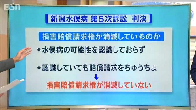 しかし新潟地裁は今日の判決で原告側は「自らが水俣病である可能性を認識しておらず、認識していたとしても差別や偏見などのために損害賠償請求を躊躇していた」として、損害賠償請求権が消滅したということはできないと結論づけました。