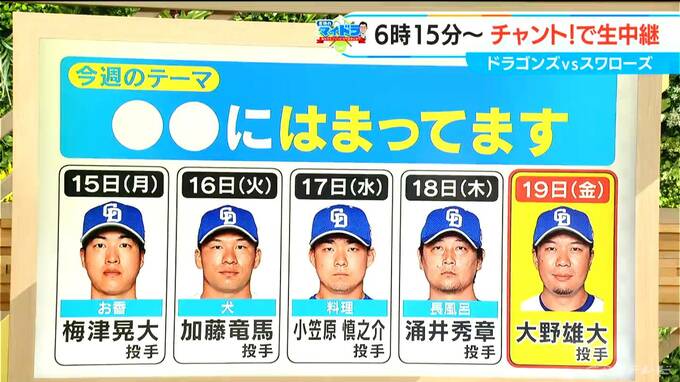 プロ野球選手は試合が終わると、バンテリンドームのベンチの横にロッカーがあって、その横にお風呂があるんですが、大体そこにみんな入って帰るんですよね。だから、皆さんの筋肉の発達具合とか、体もしっかり見ているということで、柳裕也投手並びに涌井秀章投手からドラゴンズの選手で「めちゃめちゃ体がいい人」ということの証言もいただきました。