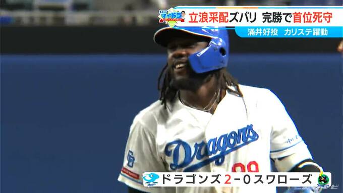 ここでバッターはマネキン並みに体が仕上がっているカリステ。強靭な肉体が放った当たりはレフト前ヒット、2点タイムリーが決勝点。ドラゴンズ、セ・リーグ10勝一番乗りです。