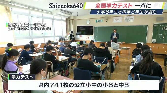 テストでは「国語」「算数・数学」のほか後日、各学校ごとに学習状況などのアンケートも行なわれます。結果は、文部科学省が7月下旬に公表する予定で、静岡県教育委員会は、結果を分析して授業の改善などを図るということです。