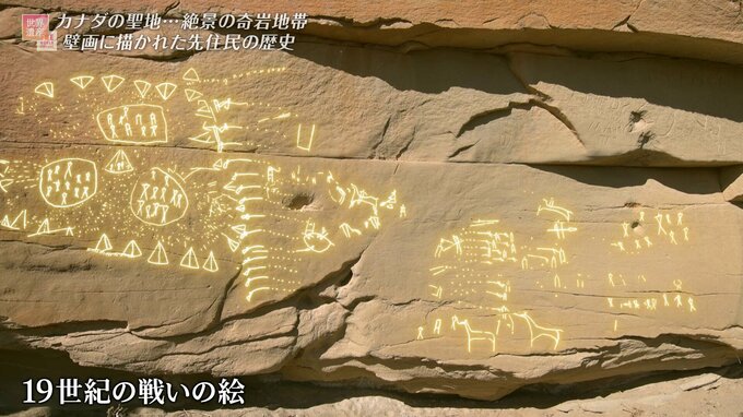 壁画の中には、19世紀にカナダに入植してきたヨーロッパ人との戦いの様子を描いたものもありました。ライティング・オン・ストーンの壁画は、2000年にわたるブラックフットの歴史の記録でもあったのです。
